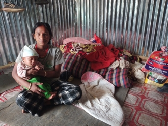 Aastha was born in Mugu district (far western Nepal) and lives in a small temporary hut at Jharuwarasi, Lalitpur. She has younger sister who is 7and half month old but due to malnutrition, the baby looks like 5 months old. We visited their hut and found in damp condition. They are economically poor. Their income depends on wage- earning and make meager amount of money. But her husband doesn’t get work regularly. The child looks sickly; their poor family condition can negatively impact child development. Mother (Gauri) looks after the baby at home. This family is in dire need of help.